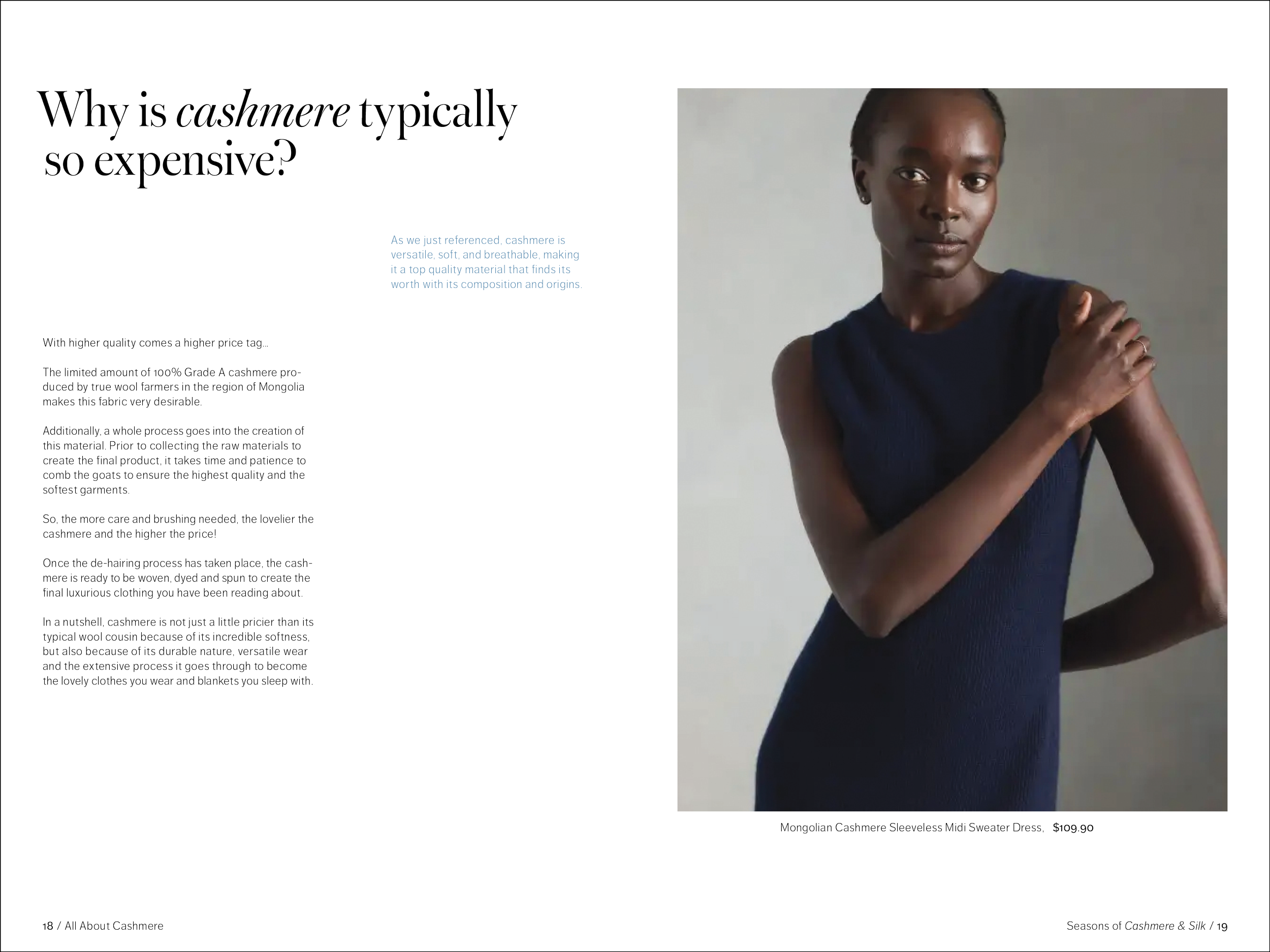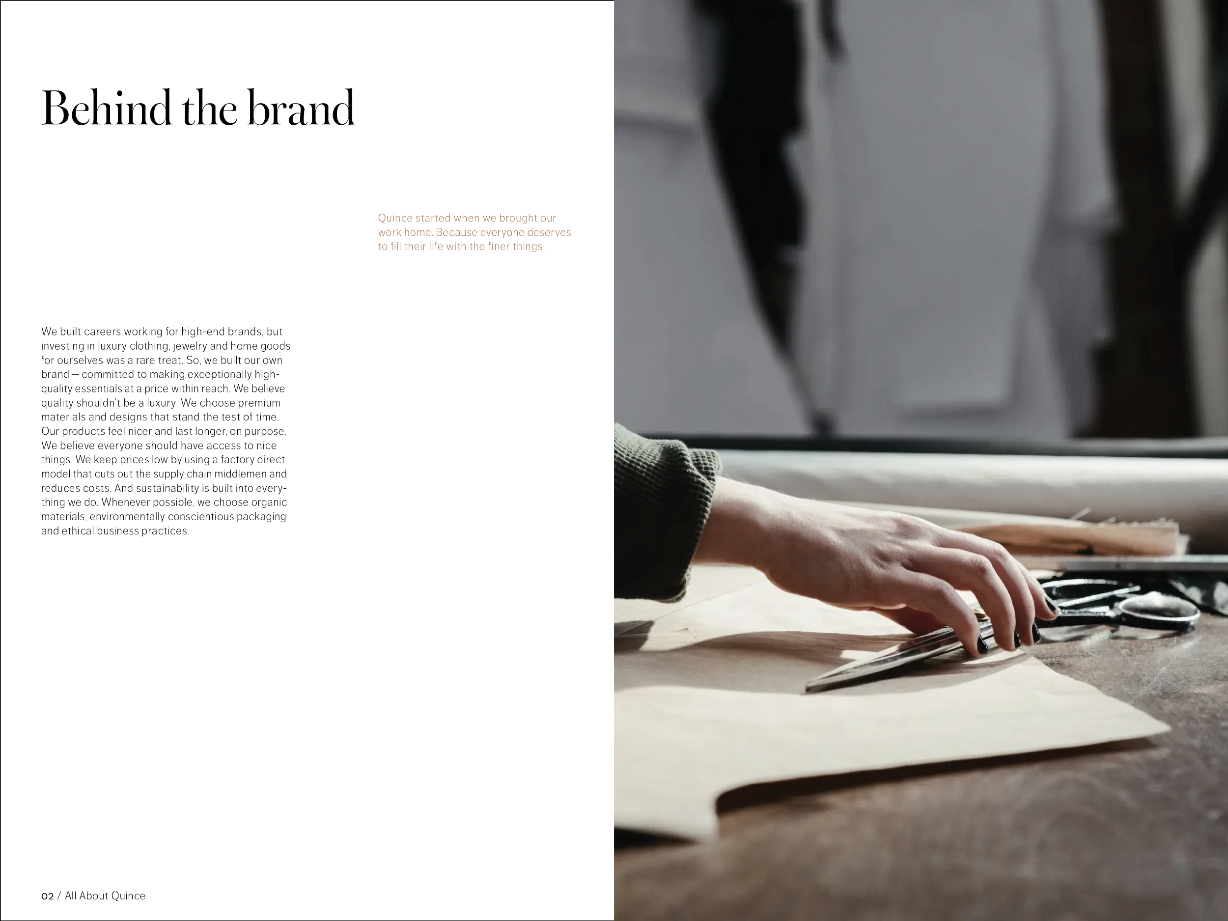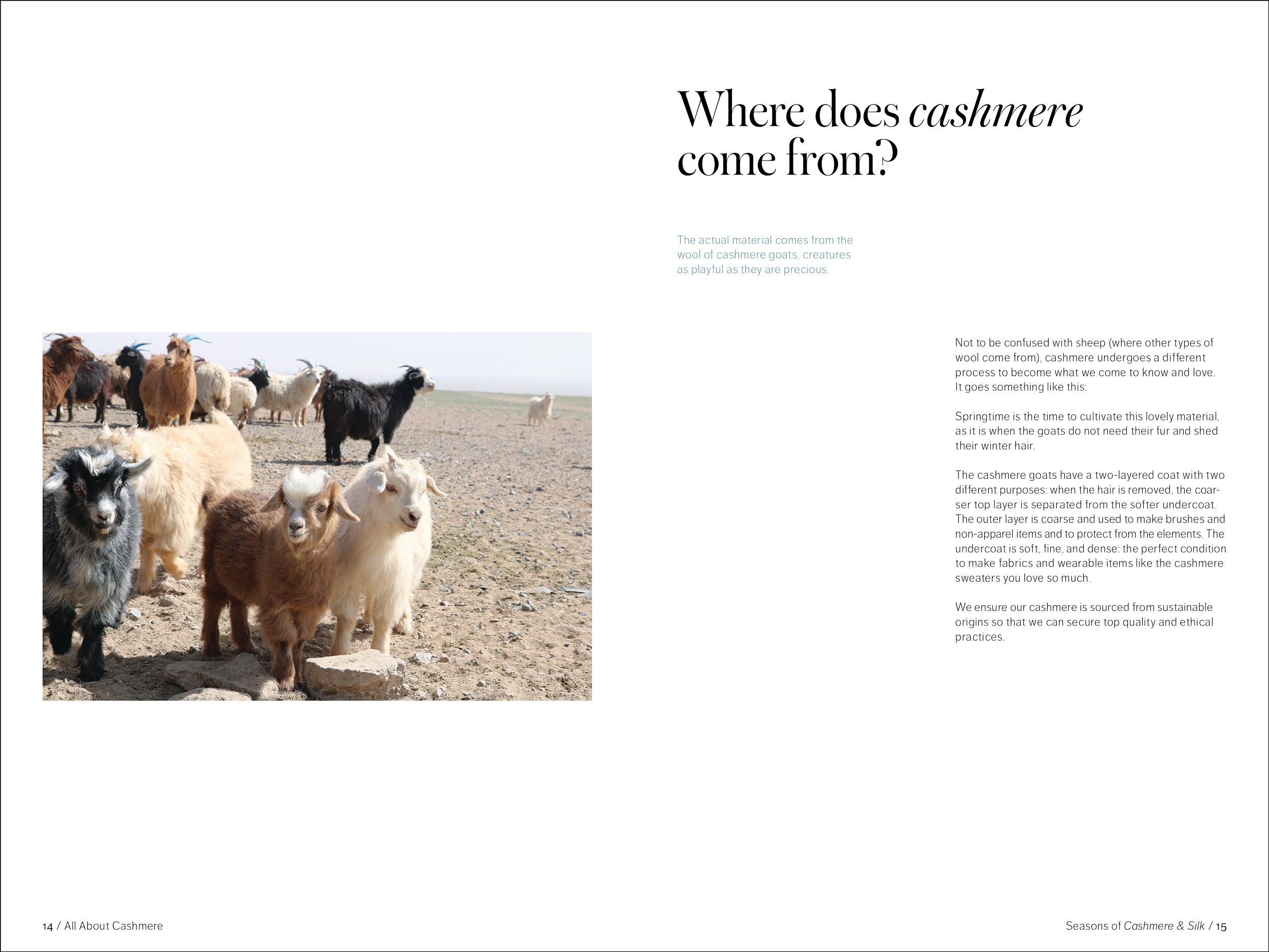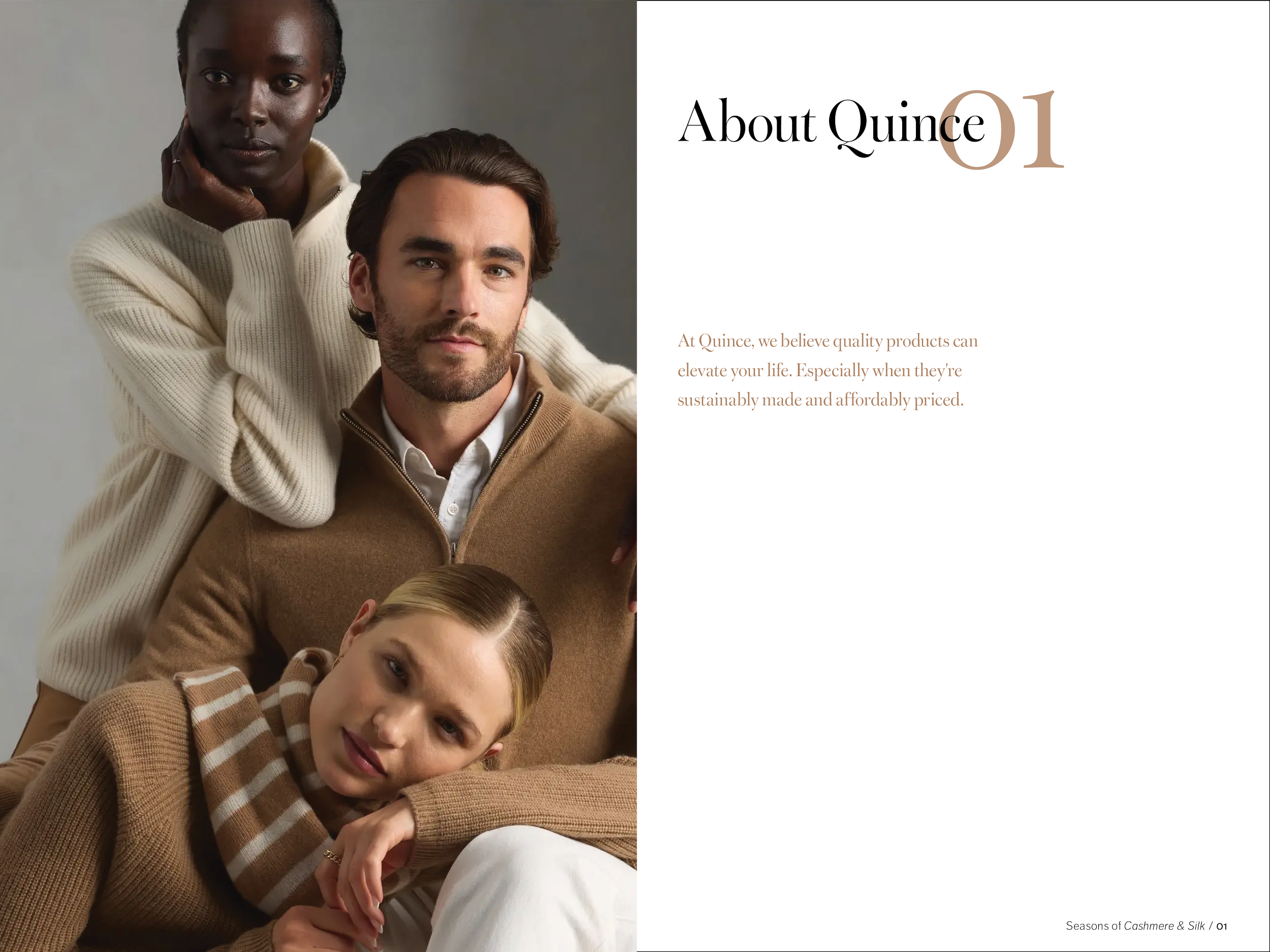 48 pages, saddle-stitch bound. One part of a fictional series promoting the brand Quince while educating the consumer on natural fabrics. Created in Adobe InDesign.