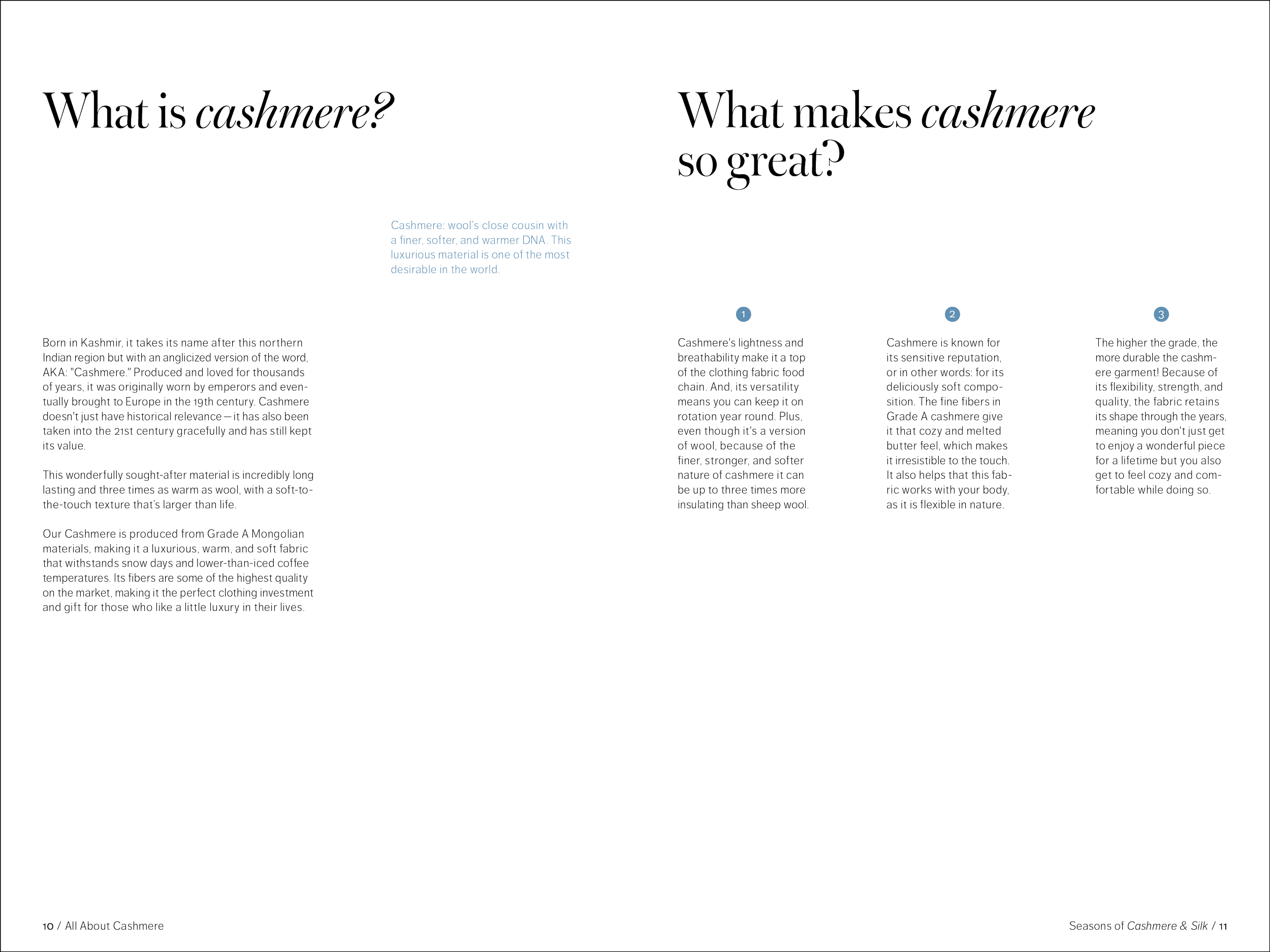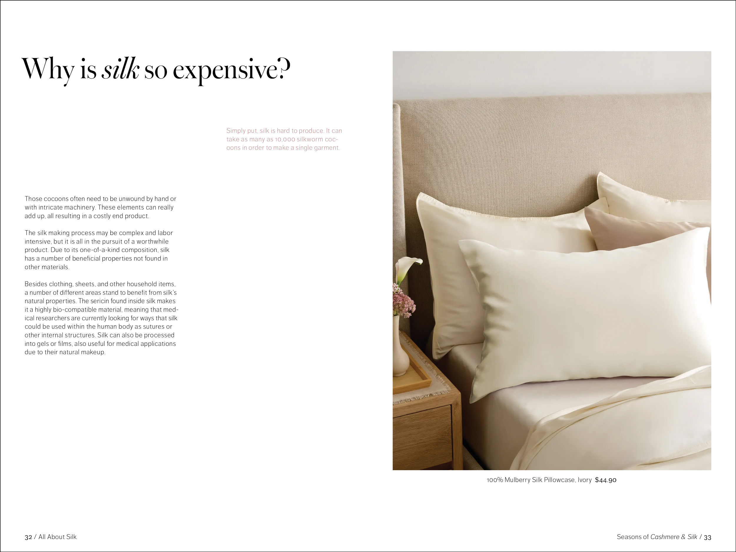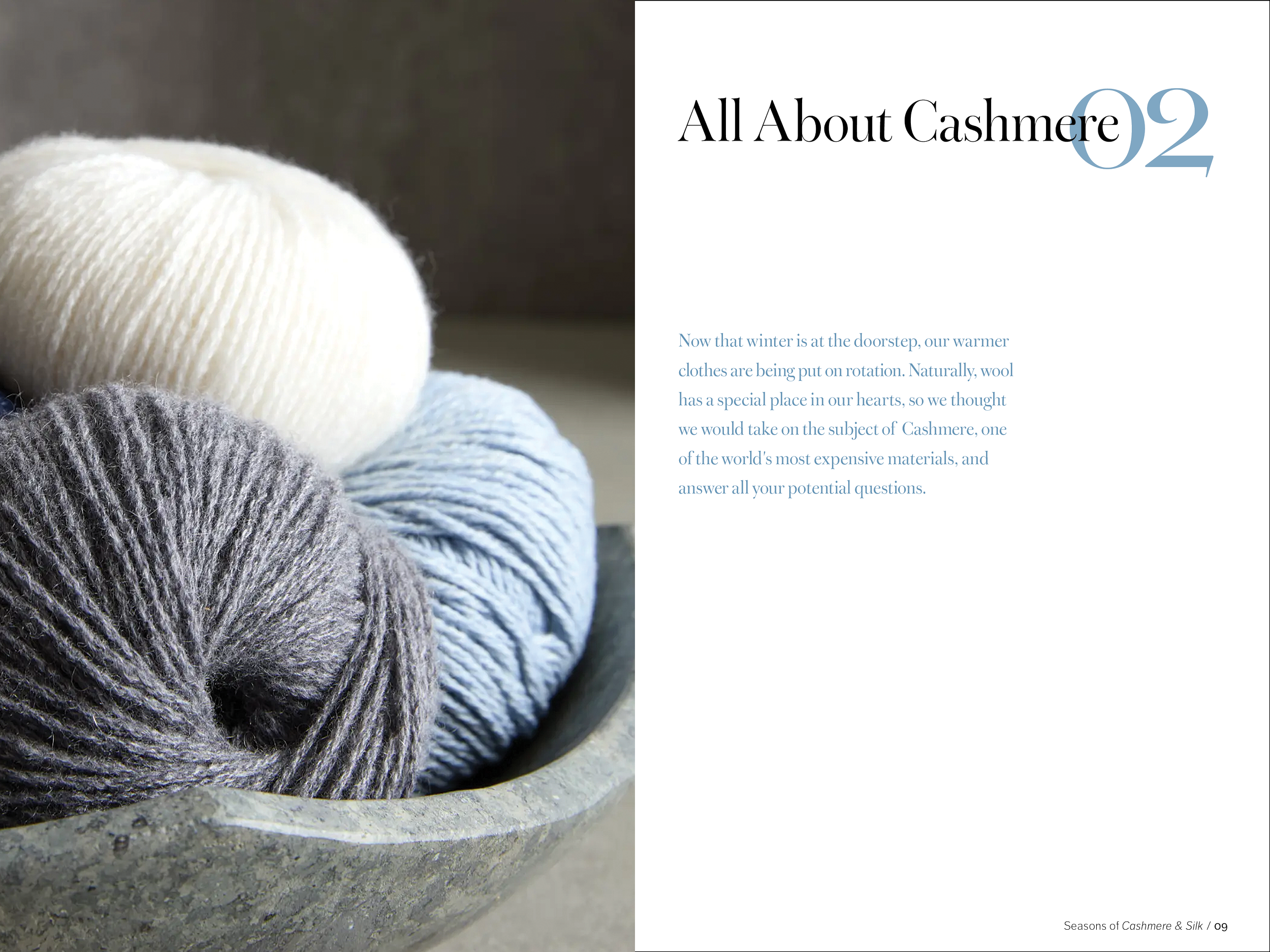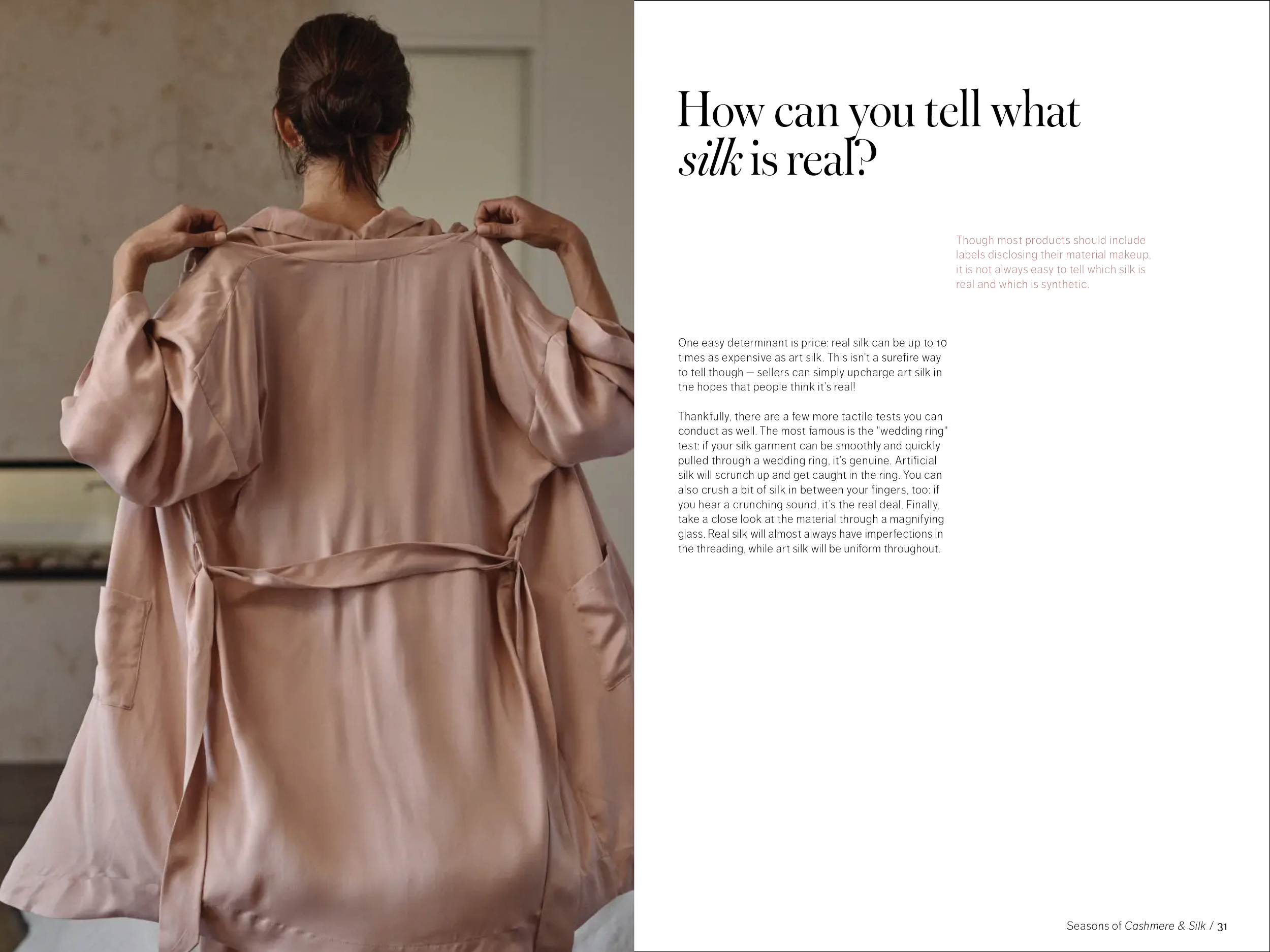 48 pages, saddle-stitch bound. One part of a fictional series promoting the brand Quince while educating the consumer on natural fabrics. Created in Adobe InDesign.