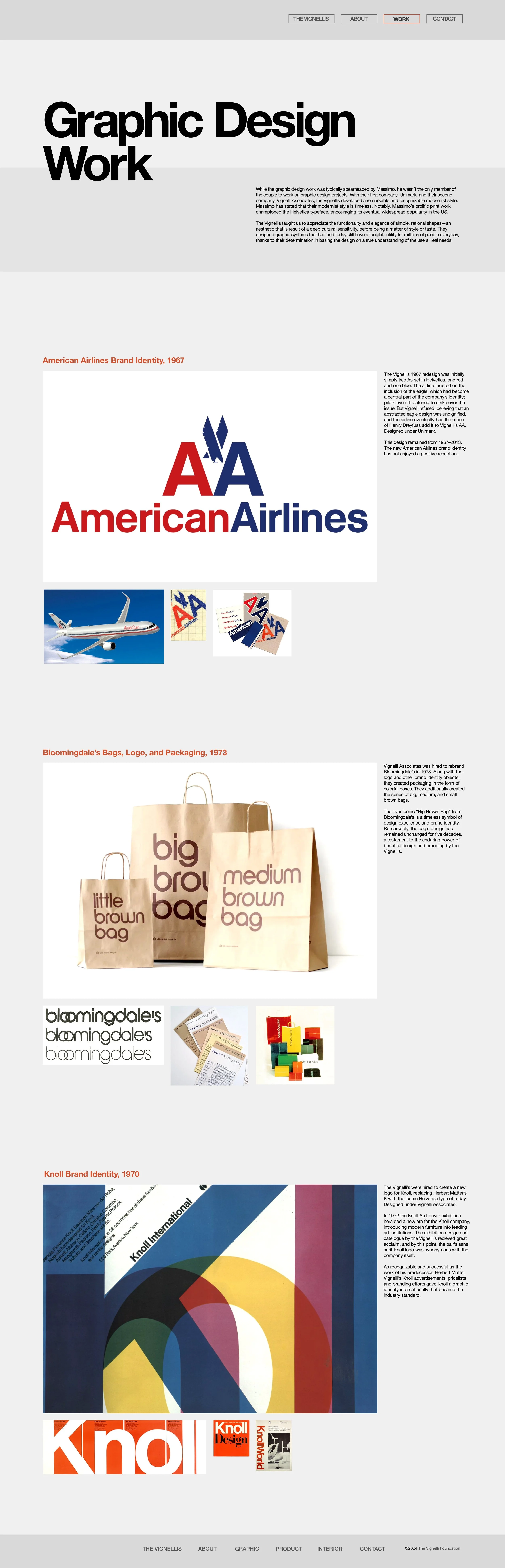 This website, dedicated to design icons Massimo & Lella Vignelli, aims to utilize the utilitarian style favored by the Vignellis to present their multidisciplinary work and educate its viewers about their life and legacy. Desktop, Mobile, and Tablet versions. Created in Figma.