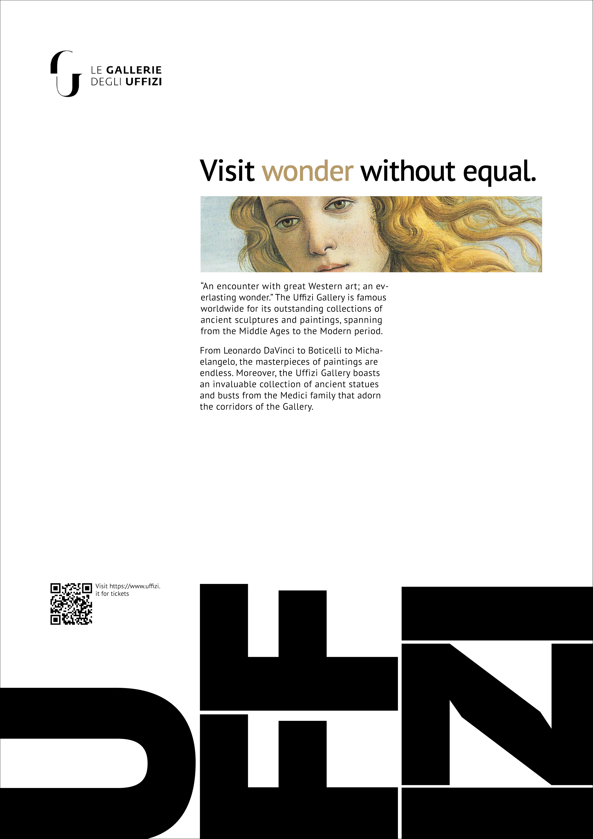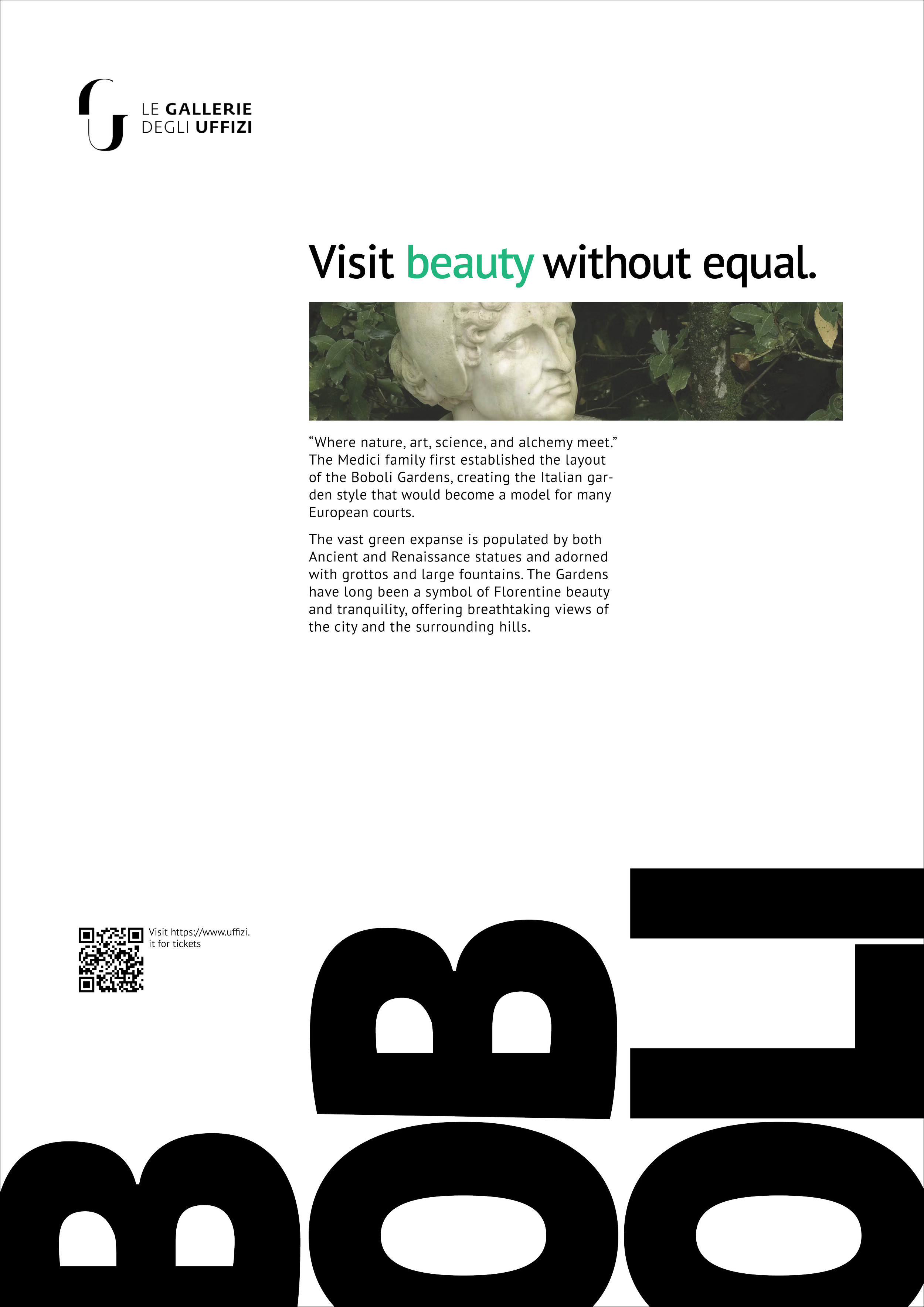A fictional promotional poster + poster series for Le Gallerie Degli Uffizi in Florence, Italy. The posters reflect the long-lasting cultural heritage of the region along with Italian design sensibilities while promoting the three main facets of the museum. Created in Adobe Indesign.